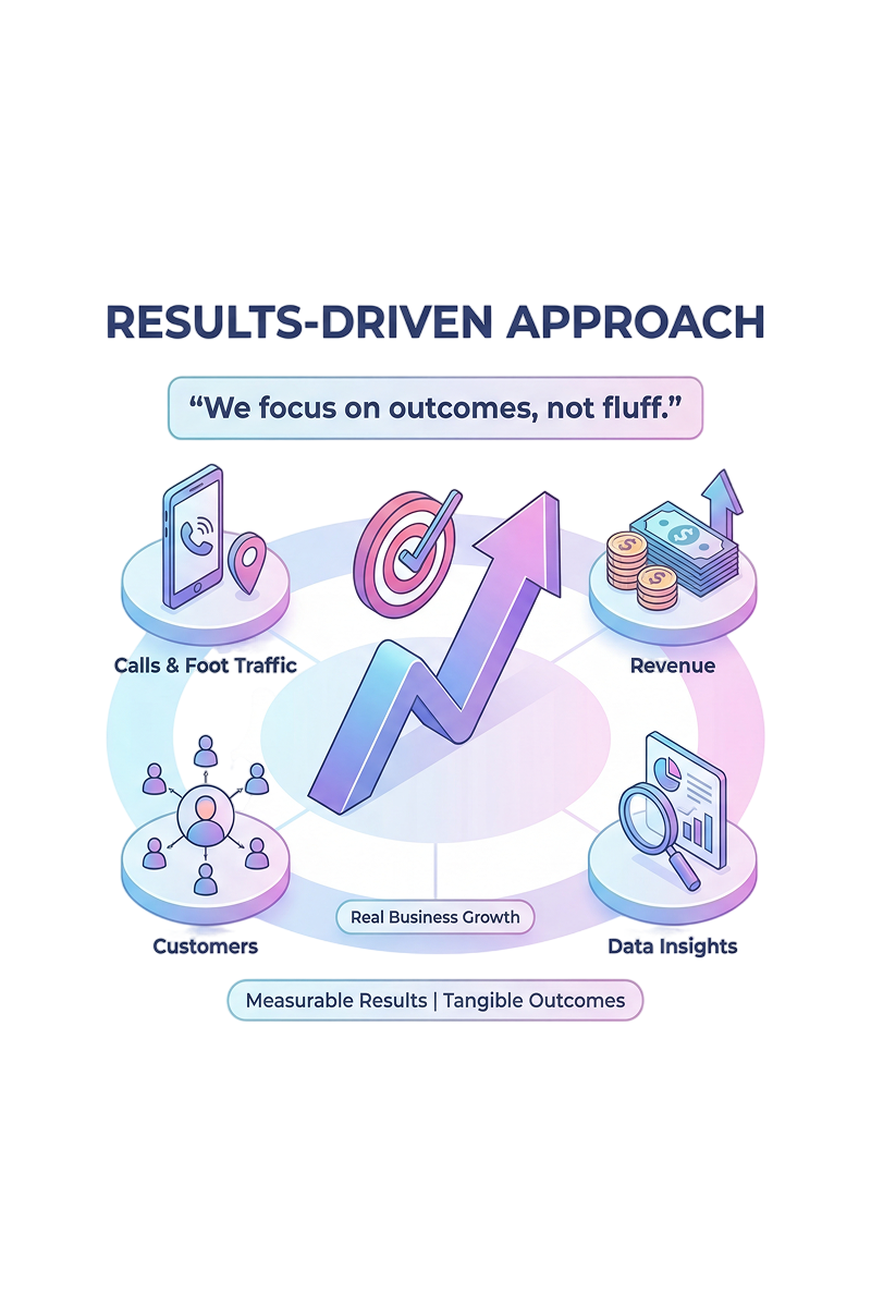 We're not about vanity metrics. Every strategy we implement is designed to drive real business outcomes—more calls, more foot traffic, more customers, and more revenue for your business.